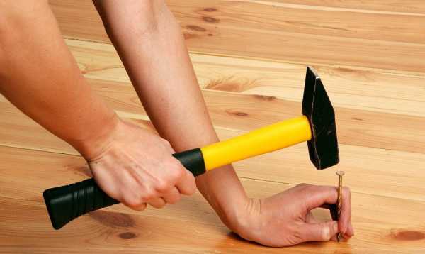 - Гвоздь, слегка вылезший из доски, способен наделать много неприятного шума. Если работу по укладке пола делали неопытные рабочие и забивали один гвоздь в середине доски, то материал будет «гулять» во время ходьбы, покачиваясь из стороны в сторону, задевая остальные элементы пола.