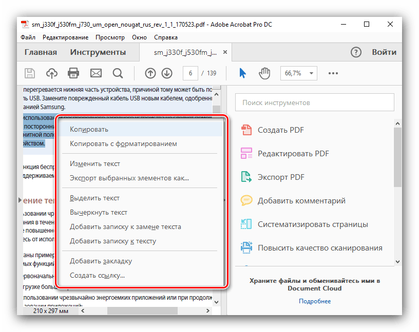 Копирование. Коснитесь параметра «Копировать» или сведите вместе три пальца.