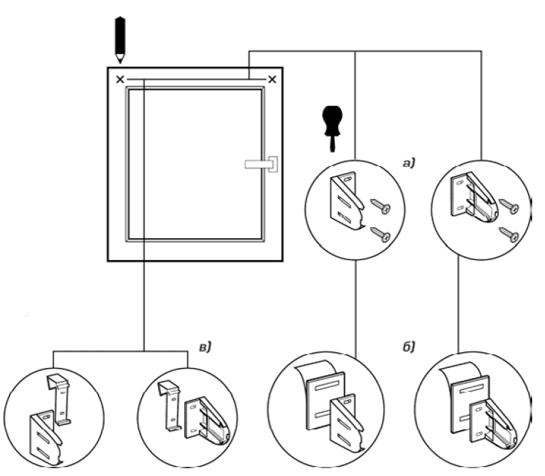 - Монтаж на пружинные кронштейны – подходит этот способ только на створки, которые открываются.