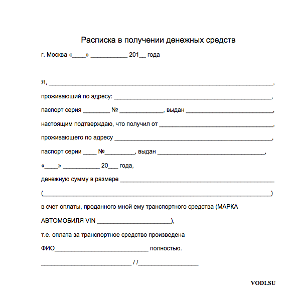 Образец расписки о получении денежных средств (как написать расписку).