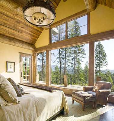 В спальне панорамные окна куда уместнее, но с условием, что из них открывается хороший вид и они защищены от посторонних глаз.