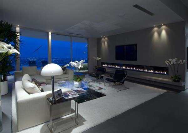 Очень выгодно в сочетании с панорамными оконными конструкциями выглядит подсветка.
