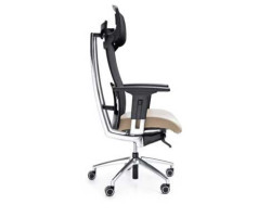 Как правило, оно оснащено разными регулировочными механизмами (качания, газлифт, синхромеханизм), выполнено из дорогих материалов (натуральная кожа, натуральное дерево), у него есть подголовник, спинка широкая, форма массивная. Либо оно может быть сделанным по индивидуальному заказу — зависит от предпочтений руководителя.