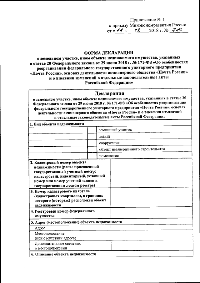Приказом Министерства экономического развития РФ от 04.06.2019 № 318 утвержден порядок рассмотрения декларации о характеристиках объекта недвижимости, в том числе ее формы.
