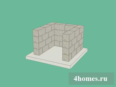 Далее кладем вертикальные стенки топки печи для пиццы. Высота стенок 4 кирпича. С фронтальной части по бокам кладем только по одному вертикальному ряду кирпичей, оставляя вход в топочную камеру свободным.