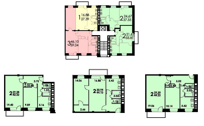 Планировка предусматривала квартиры от 1-комнатных до 5-комнатных.