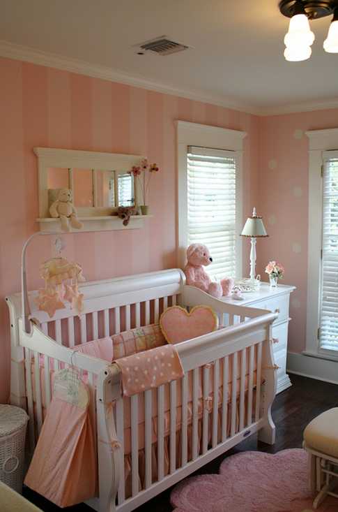 Совет: Если вы не хотите в детской комнате экспериментировать с цветами — поиграйте с принтом. Пусть одна стена будет оформлена широкой полосой, другая — кругами. Такие элементы можно как нарисовать, так и наклеить, предварительно напечатав.