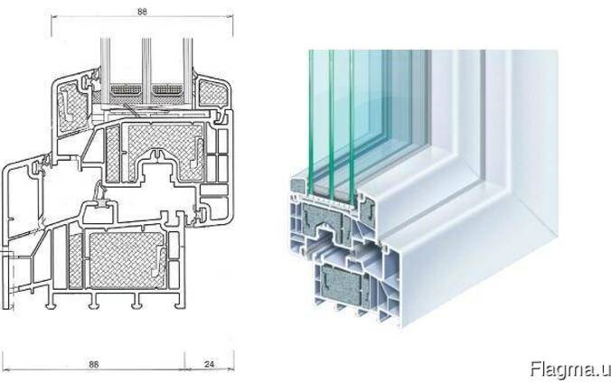 №- уровень теплоизоляции профиля от 0,64м2 ° с / Вт до 1,05м2 ° с / Вт. Чем больше камер в профиле, тем выше коэффициент тепловой защиты; Звукоизоляция