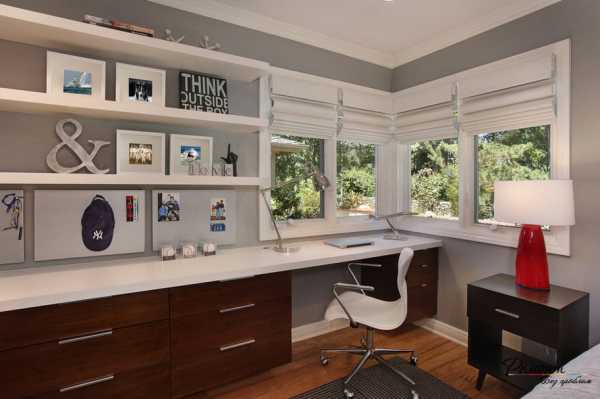 При организации таких мест идеальным решением станет размещение учебной зоны школьников возле окна. Современные производители мебели предлагают массу решений, которые позволяют установить не только стол, но и шкафчики для него. Зона над рабочим пространством отводится для светильников, навесных полок.