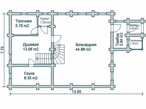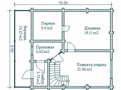 Планировка бани включает в себя три основных помещения: парная, душевая и комната отдыха.