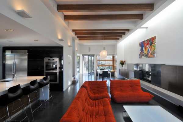 ΠΠΎΠΏΠ΅ΡΠ΅ΡΠ½ΡΠ΅ ΡΠΎΡΠΌΡ, ΠΏΠΎΡΠΎΠ»ΠΎΡΠ½ΡΠ΅ Π±Π°Π»ΠΊΠΈ, Π»ΠΈΠ½Π΅ΠΉΠ½ΡΠ΅ ΡΠ²Π΅ΡΠΈΠ»ΡΠ½ΠΈΠΊΠΈ ΠΈ ΠΌΠ΅Π±Π΅Π»Ρ, ΡΡΠΎΡΡΠ°Ρ Π½Π΅ Π²Π΄ΠΎΠ»Ρ ΡΡΠ΅Π½, Π° ΠΏΠΎ Π²ΠΎΠ·ΠΌΠΎΠΆΠ½ΠΎΡΡΠΈ ΠΏΠΎ ΡΠ΅Π½ΡΡΡ ΠΏΡΠΎΡΡΡΠ°Π½ΡΡΠ²Π° β ΡΡΠΎ Π½Π°ΡΠΈ ΡΠΎΡΠ·Π½ΠΈΠΊΠΈ Π² ΡΠΌΡΠ³ΡΠ΅Π½ΠΈΠΈ ΡΡΡΠ΅ΠΊΡΠ° ΠΊΠΎΡΠΈΠ΄ΠΎΡΠ° Π² Π³ΠΎΡΡΠΈΠ½ΠΎΠΉ ΠΊΠΎΠΌΠ½Π°ΡΠ΅. ΠΠ°ΠΏΡΠΈΠΌΠ΅Ρ, Π³ΡΡΠΏΠΏΡ Π΄ΠΈΠ²Π°Π½ΠΎΠ² ΠΈ ΠΊΡΠ΅ΡΠ΅Π» Π² Π΄Π»ΠΈΠ½Π½ΠΎΠΌ ΠΏΡΠΎΡΡΡΠ°Π½ΡΡΠ²Π΅ Π»ΡΡΡΠ΅ ΡΠ°Π·ΠΌΠ΅ΡΡΠΈΡΡ ΠΏΠΎ ΡΠ΅Π½ΡΡΡ ΠΊΠΎΠΌΠ½Π°ΡΡ, Π΅ΡΠ»ΠΈ ΡΡΠΎ ΠΏΠΎΠ·Π²ΠΎΠ»ΡΠ΅Ρ ΠΎΠ±ΡΠ°Ρ ΠΏΠ»ΠΎΡΠ°Π΄Ρ, ΡΠΎΠ·Π΄Π°Π² ΡΠ΅ΠΌ ΡΠ°ΠΌΡΠΌ Π²ΠΈΠ·ΡΠ°Π»ΡΠ½ΡΠΉ ΠΈ ΡΡΠ½ΠΊΡΠΈΠΎΠ½Π°Π»ΡΠ½ΡΠΉ Π±Π°ΡΡΠ΅Ρ.