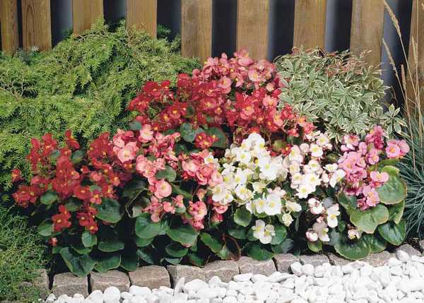 По цвету листьев различают зеленолистные, бронзоволистные гибриды. Высота низкорослых кустиков, как правило, в пределах 15-30 см. К условиям выращивания бегония неравнодушна. Почва для клумбы должна быть богатой гумусом, со слегка кислой реакцией, влагоемкой, но не переувлажненной – избыток влаги летом вызывает загнивание корней.