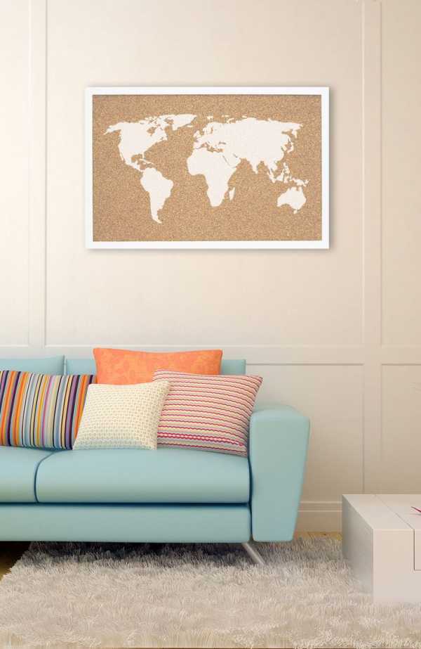 Вы вполне можете ограничиться обыкновенной физической картой, особенно, если она по цвету вписываются в интерьер. Она принесет и пользу – вы больше узнаете о мире, не выходя из дома.