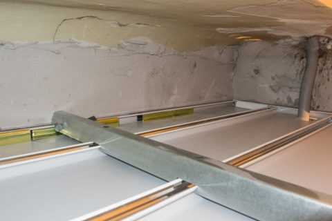 К установке реечного потолка следует приступать в последнюю очередь, то есть после того как высохнут оштукатуренные стены, будут установлены окна и завершена отделка пола. Если на потолке имеются электрические кабели — их необходимо зафиксировать, чтобы они не мешали в работе.