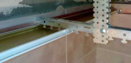- При помощи перфоратора и дюбель шурупов смонтируйте угловой направляющий профиль, по ранее полученной разметке.