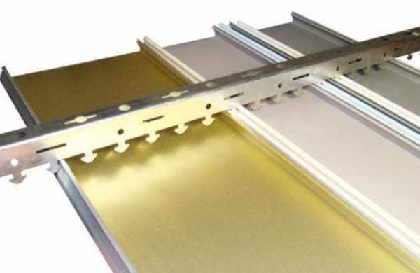 Алюминиевый или стальной траверс представляет собой профиль с «зубчиками», за которые и цепляют потолочные рейки. Для каждого типа реек существует свой траверс. Во избежание образования щелей рекомендуется покупать рейки и траверсы одной фирмы.