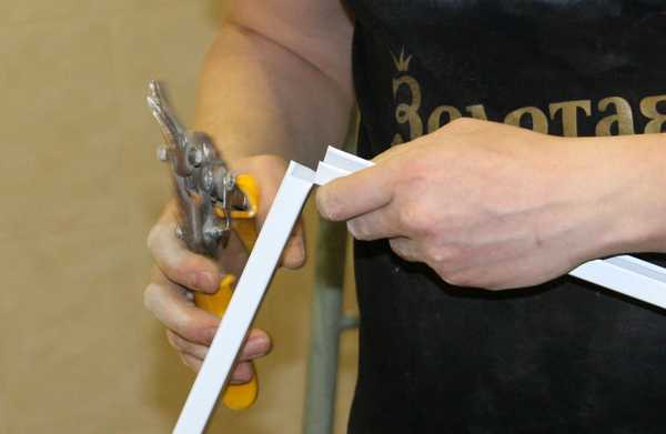 - Отрежьте по размеру алюминиевую рейку. Чтобы край получился ровным, проведите несколько раз по метке канцелярским ножом, затем ножницами по металлу надрежьте изогнутые края и отломите лишнюю часть, расшатав её.