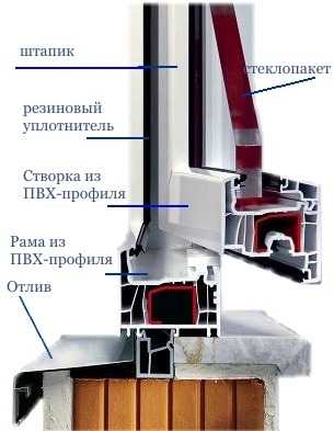 - Штапик. Предназначен для крепления стеклопакета к профилю. Недостаточно прочное прилегание стеклопакета к профилю — один из недостатков конструкции, являющийся причин постоянной потери тепла. Для герметичности штампик должен быть прорезинен.