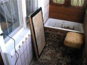 Если балкон не застеклен, деревянный ящик придется обшивать снаружи, иначе древесина зимой при оттепели потянет сырость. Короб обрабатывают защитной пропиткой, красят. После высыхания стенки ящика оббивают линолеумом или пластиковыми панелями.